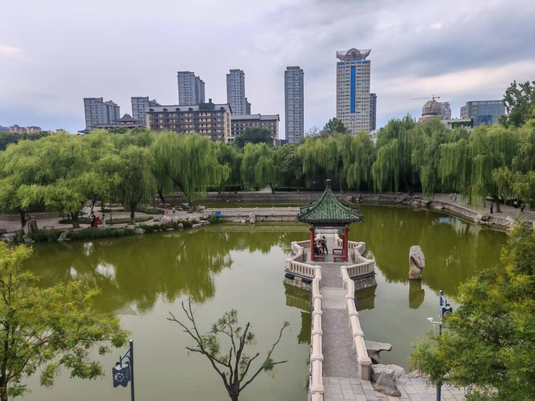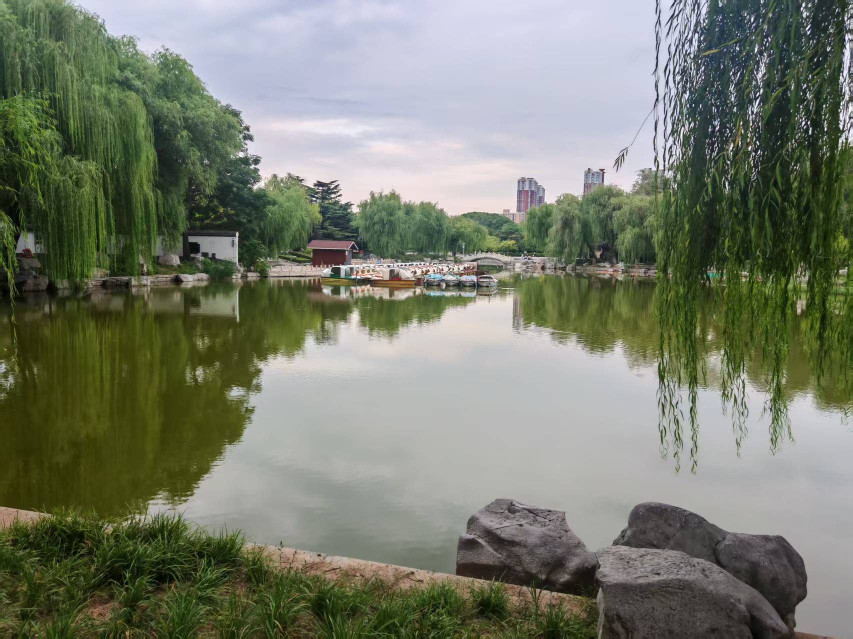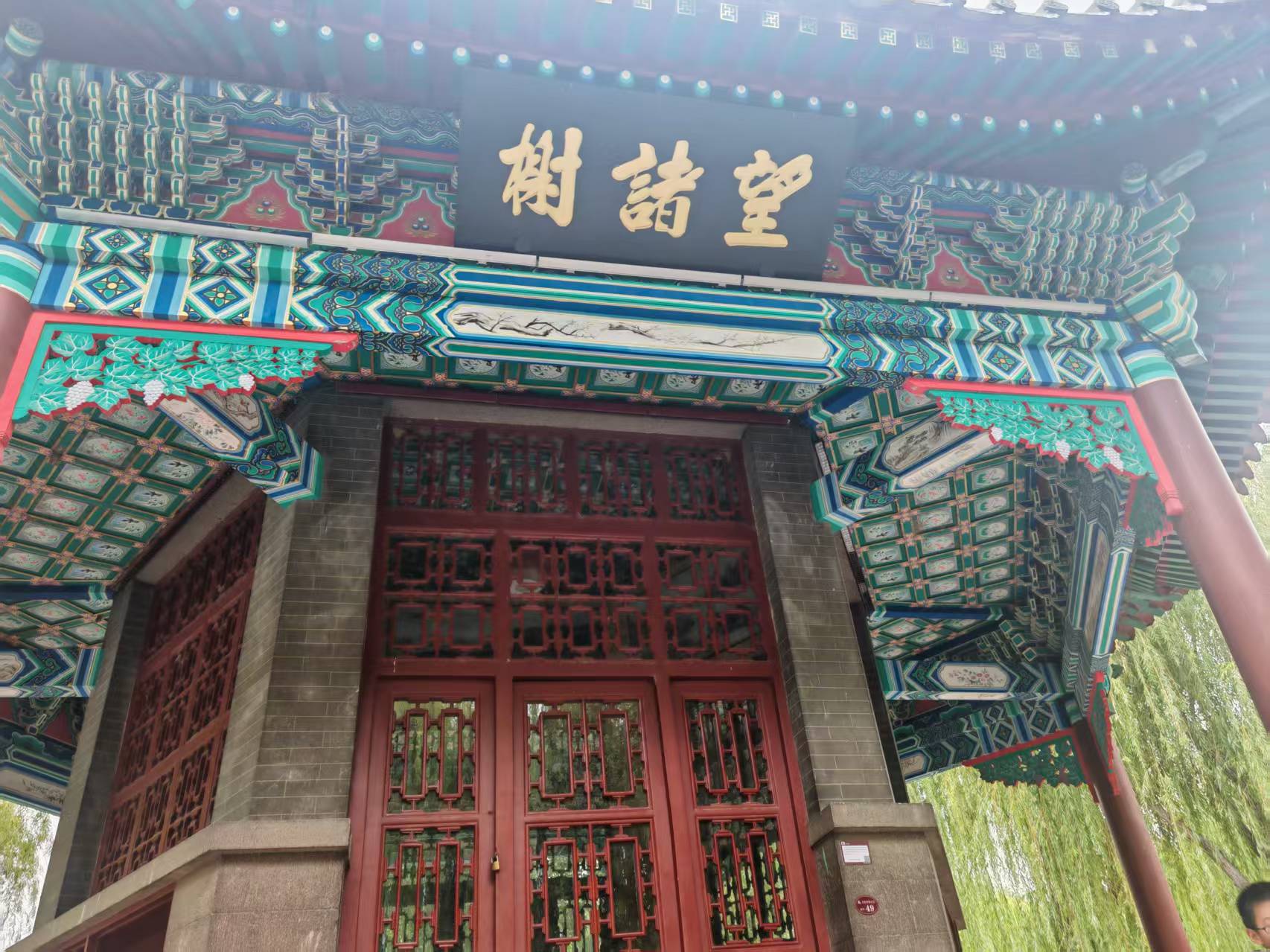 和她们分别,我们也回到了丛台公园(其实8.27理应逛了丛台公园,但是我和zhgg溜去拿霸王茶姬了)。我们猜“丛台”这个名字应该是因为整个公园像飘在湖上的台子,湖泊随风泛起涟漪,在柳树的倒映下显得翠绿;鸟鸣声此起彼伏,给空气都住满了活力。望诸榭楼阁伫立其间,红砖绿瓦叙说着邯郸的历史。天哪我的文采实在是太好了。