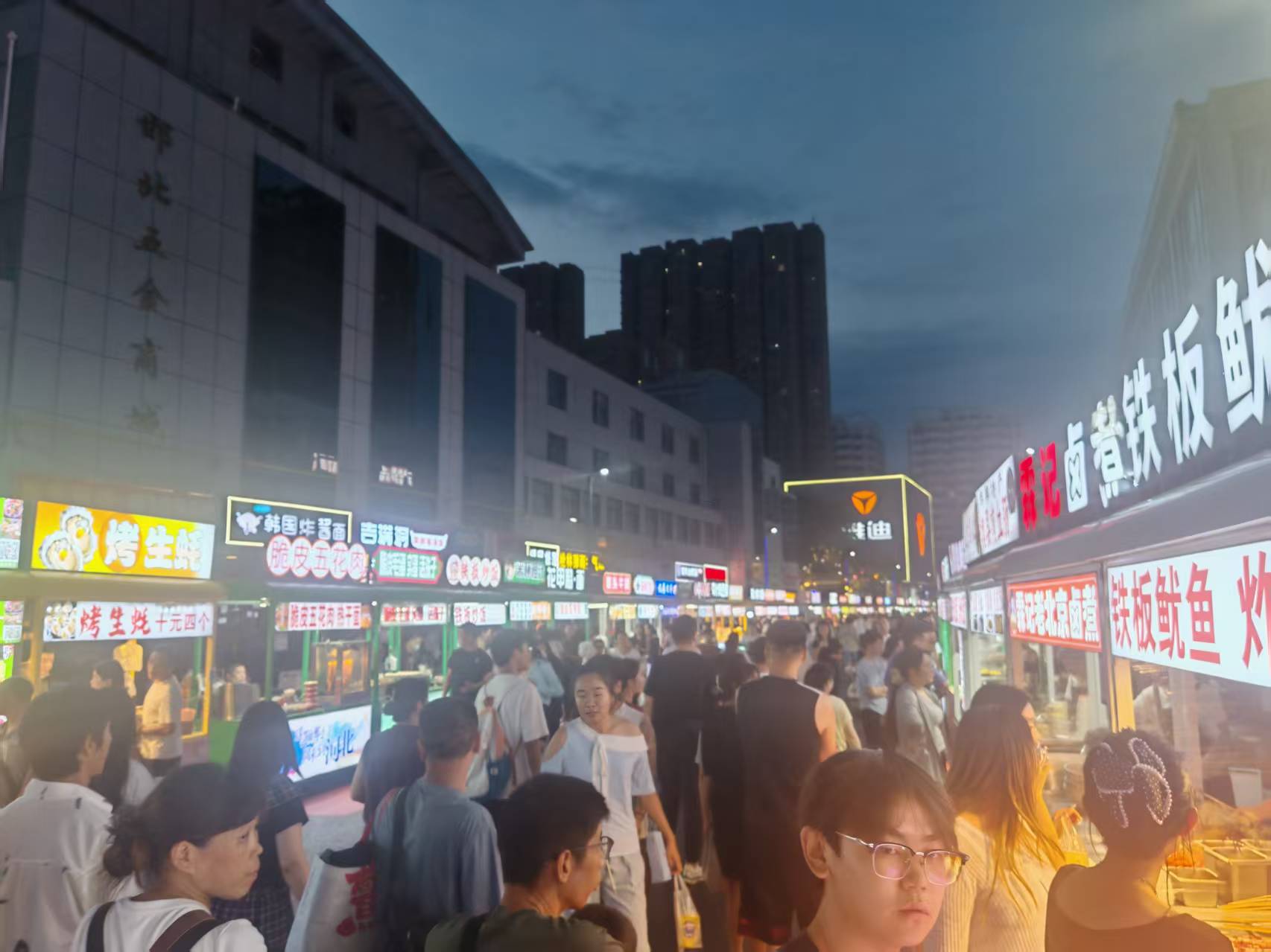 邯郸的市区是真热闹,车子和行人都是络绎不绝,尤其是电动车真的是满眼都是,上次看到这种景况还是在广西。夜市的核心区域是一条街的美食,周边还有一些商铺,大部分也是吃饭的店子。